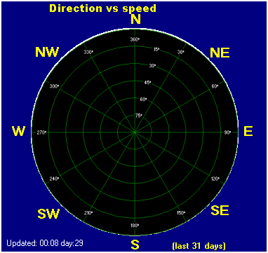Maximum windspeed = 0.0 mph from 00°( N ) on day 29 at time 00:07