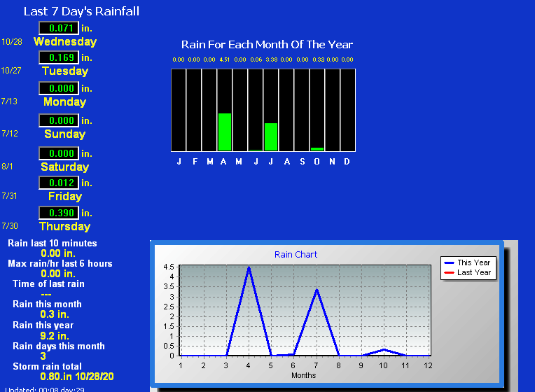 Maximum rain per minute = 0.020 in on day 28 at time 11:00